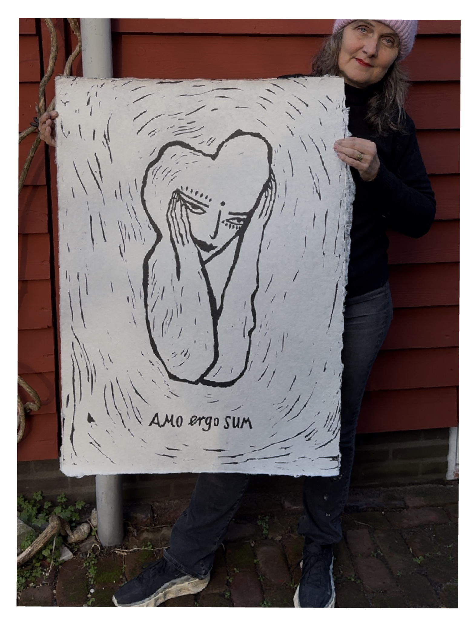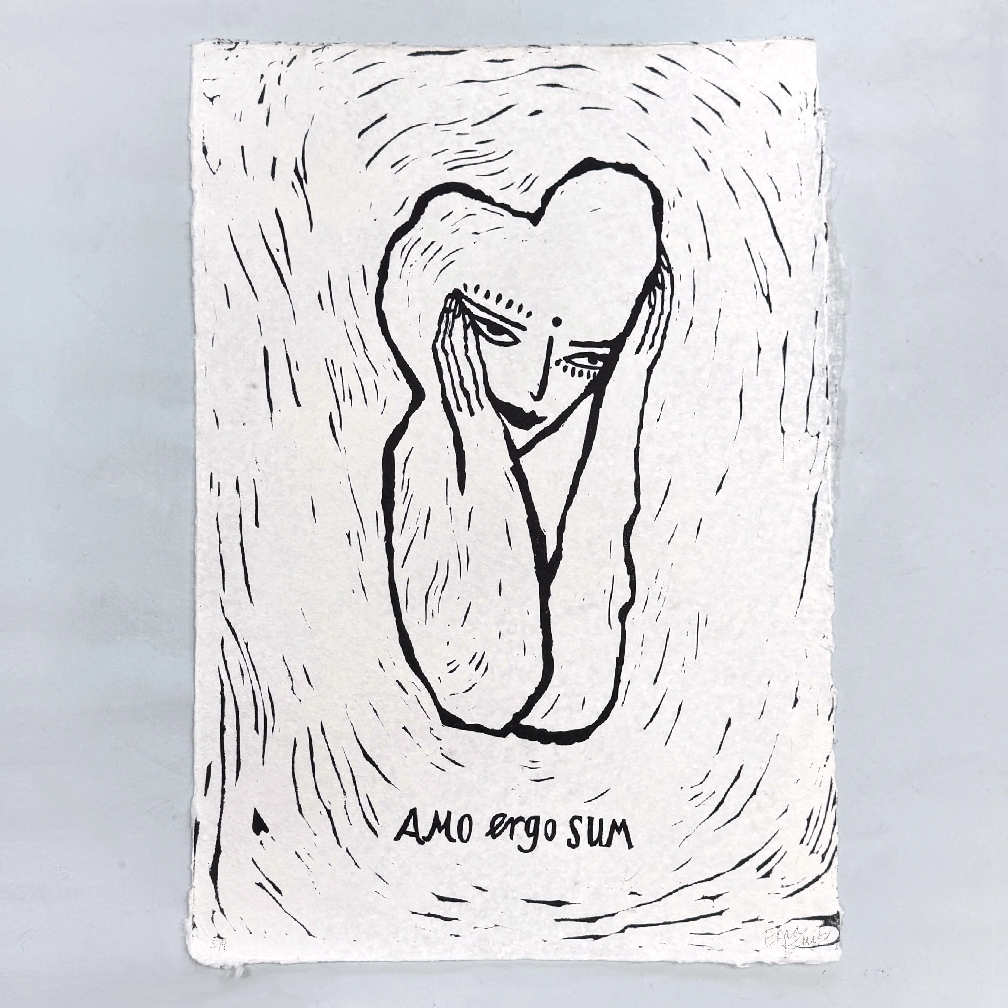 In a world that so often values thinking over feeling, Amo ergo sum—I love, therefore I am—offers a different truth. This artwork invites you to see with the heart, to reconnect with yourself in love, and from that place look lovingly toward the world. Being here, fully and softly, gives life its true value.